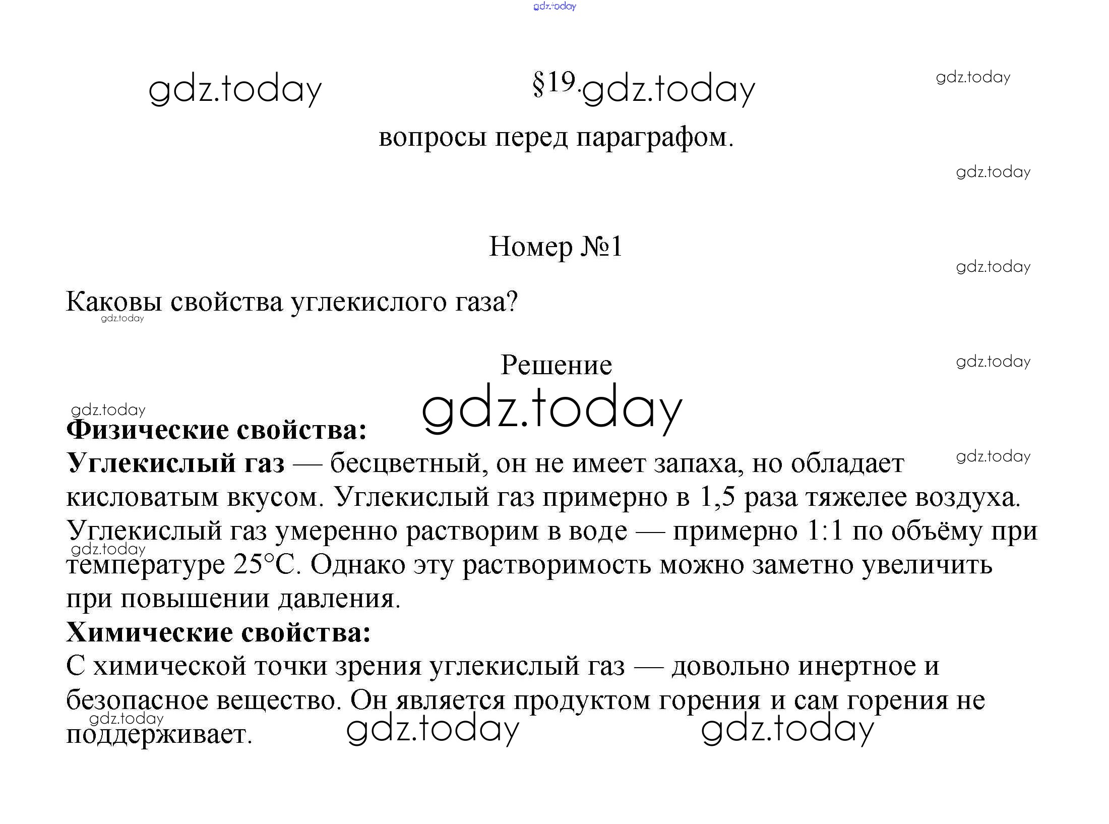 На страницах сайта gdz.today вы найдете учебный и вспомогательный материал, направленный на улучшения знаний школьной программы. ГДЗ - онлайн мир знаний Вопросы перед параграфом Решение к §19. Углекислый газ 1 Учебнику по Химии для 7 класса Еремин, Дроздов Дрофа 2020