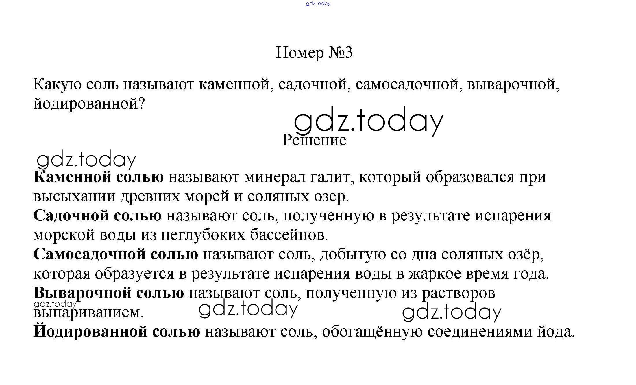 На страницах сайта gdz.today вы найдете учебный и вспомогательный материал, направленный на улучшения знаний школьной программы. ГДЗ - онлайн мир знаний Вопросы и задания Решение к §20. Поваренная соль 3 Учебнику по Химии для 7 класса Еремин, Дроздов Дрофа 2020
