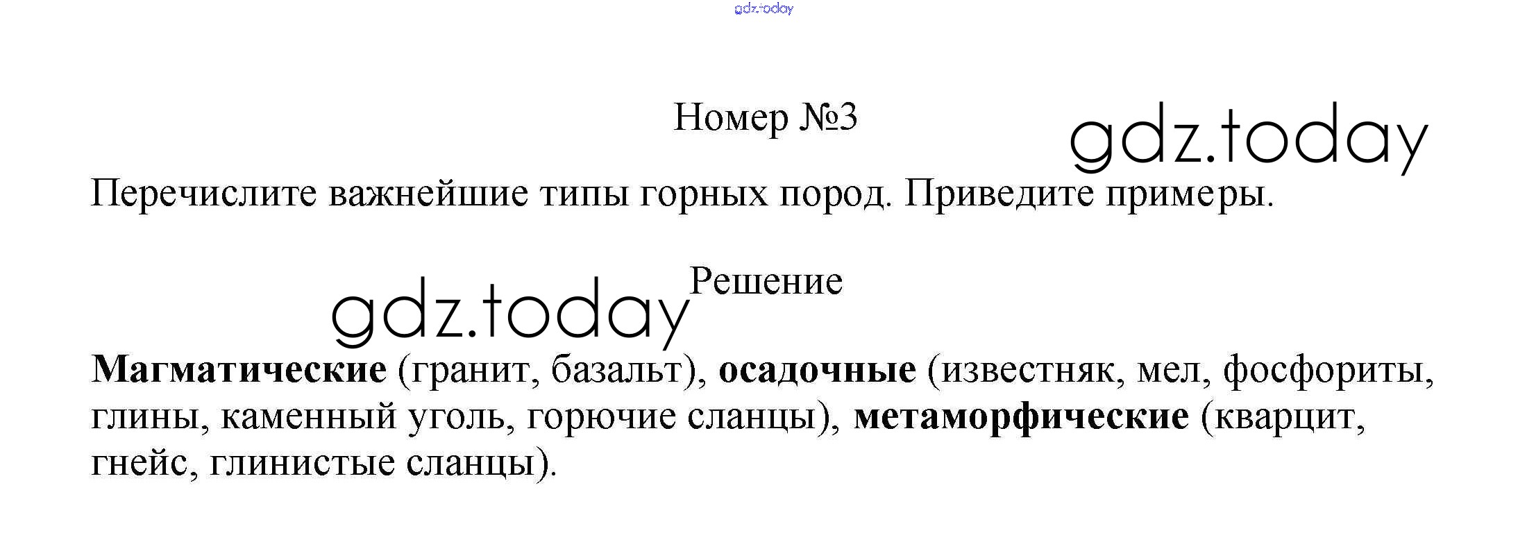 На страницах сайта gdz.today вы найдете учебный и вспомогательный материал, направленный на улучшения знаний школьной программы. ГДЗ - онлайн мир знаний Вопросы и задания Решение к §22. Минеральные и горные породы 3 Учебнику по Химии для 7 класса Еремин, Дроздов Дрофа 2020