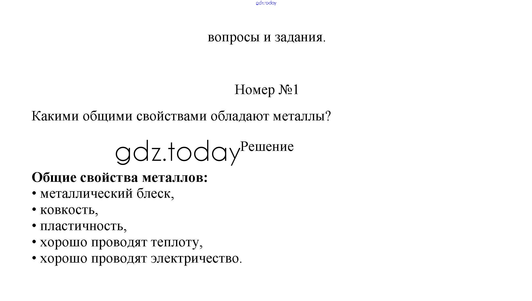 На страницах сайта gdz.today вы найдете учебный и вспомогательный материал, направленный на улучшения знаний школьной программы. ГДЗ - онлайн мир знаний Вопросы и задания Решение к §24. Металлы и сплавы 1 Учебнику по Химии для 7 класса Еремин, Дроздов Дрофа 2020