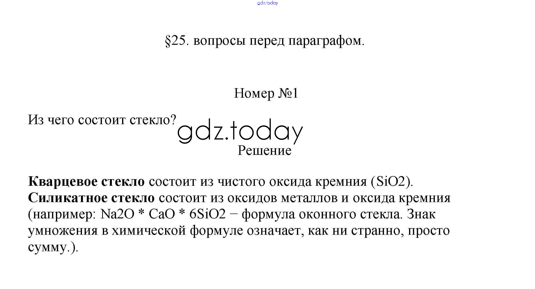 На страницах сайта gdz.today вы найдете учебный и вспомогательный материал, направленный на улучшения знаний школьной программы. ГДЗ - онлайн мир знаний Вопросы перед параграфом Решение к §25. Стекло 1 Учебнику по Химии для 7 класса Еремин, Дроздов Дрофа 2020
