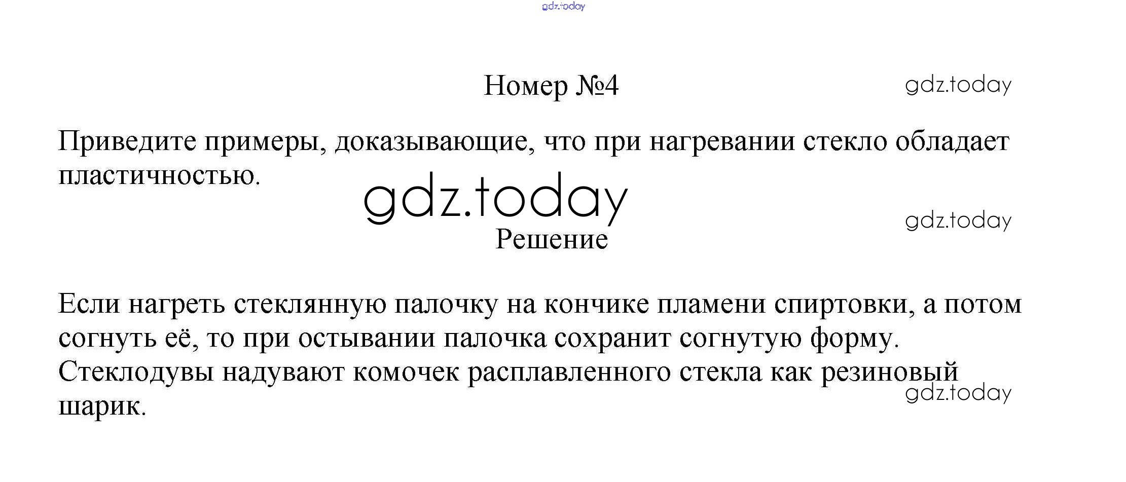 На страницах сайта gdz.today вы найдете учебный и вспомогательный материал, направленный на улучшения знаний школьной программы. ГДЗ - онлайн мир знаний Вопросы и задания Решение к §25. Стекло 4 Учебнику по Химии для 7 класса Еремин, Дроздов Дрофа 2020