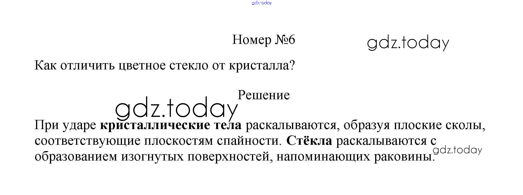 На страницах сайта gdz.today вы найдете учебный и вспомогательный материал, направленный на улучшения знаний школьной программы. ГДЗ - онлайн мир знаний Вопросы и задания Решение к §25. Стекло 6 Учебнику по Химии для 7 класса Еремин, Дроздов Дрофа 2020