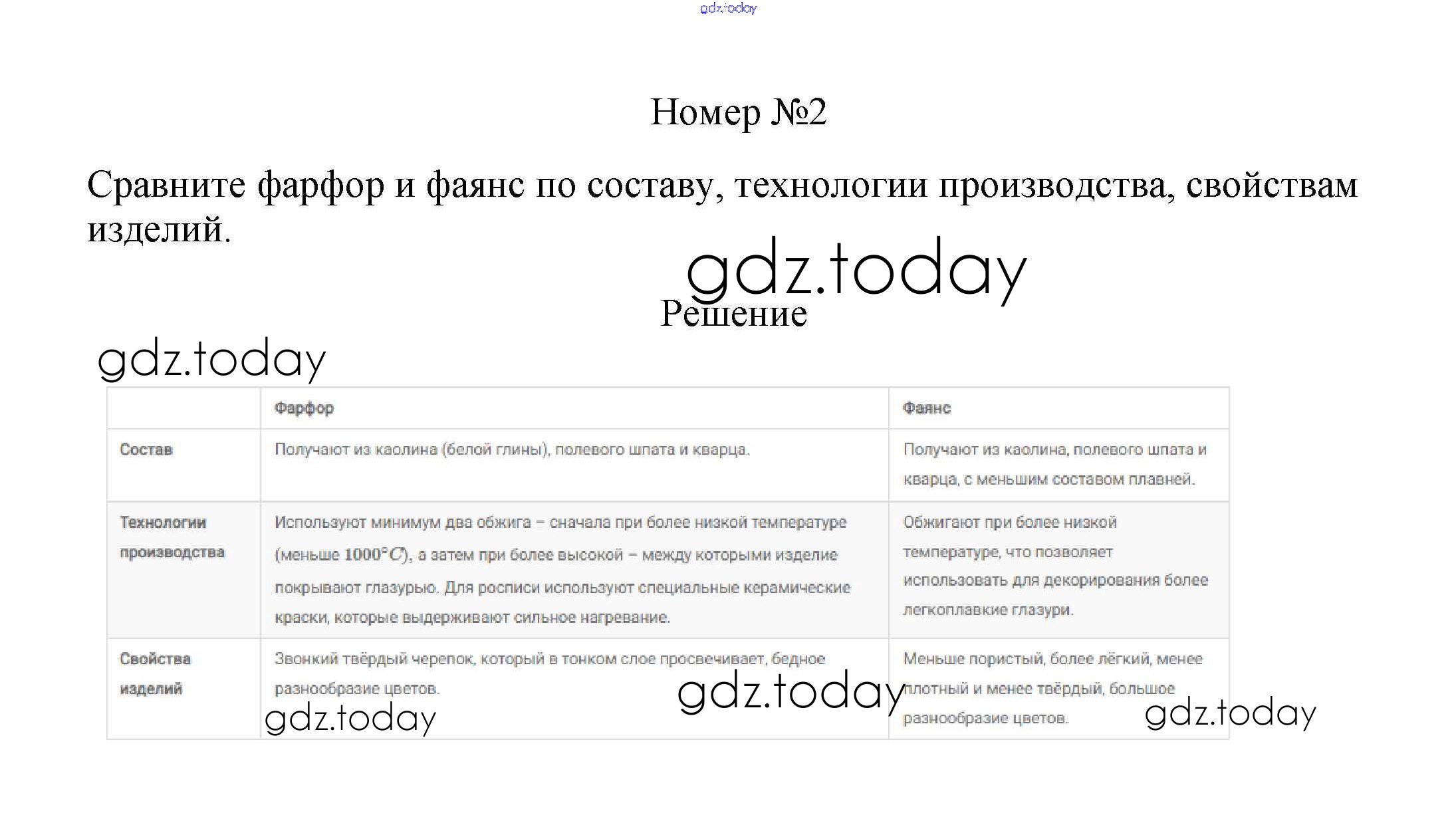 На страницах сайта gdz.today вы найдете учебный и вспомогательный материал, направленный на улучшения знаний школьной программы. ГДЗ - онлайн мир знаний Вопросы и задания Решение к §26. Керамика 2 Учебнику по Химии для 7 класса Еремин, Дроздов Дрофа 2020