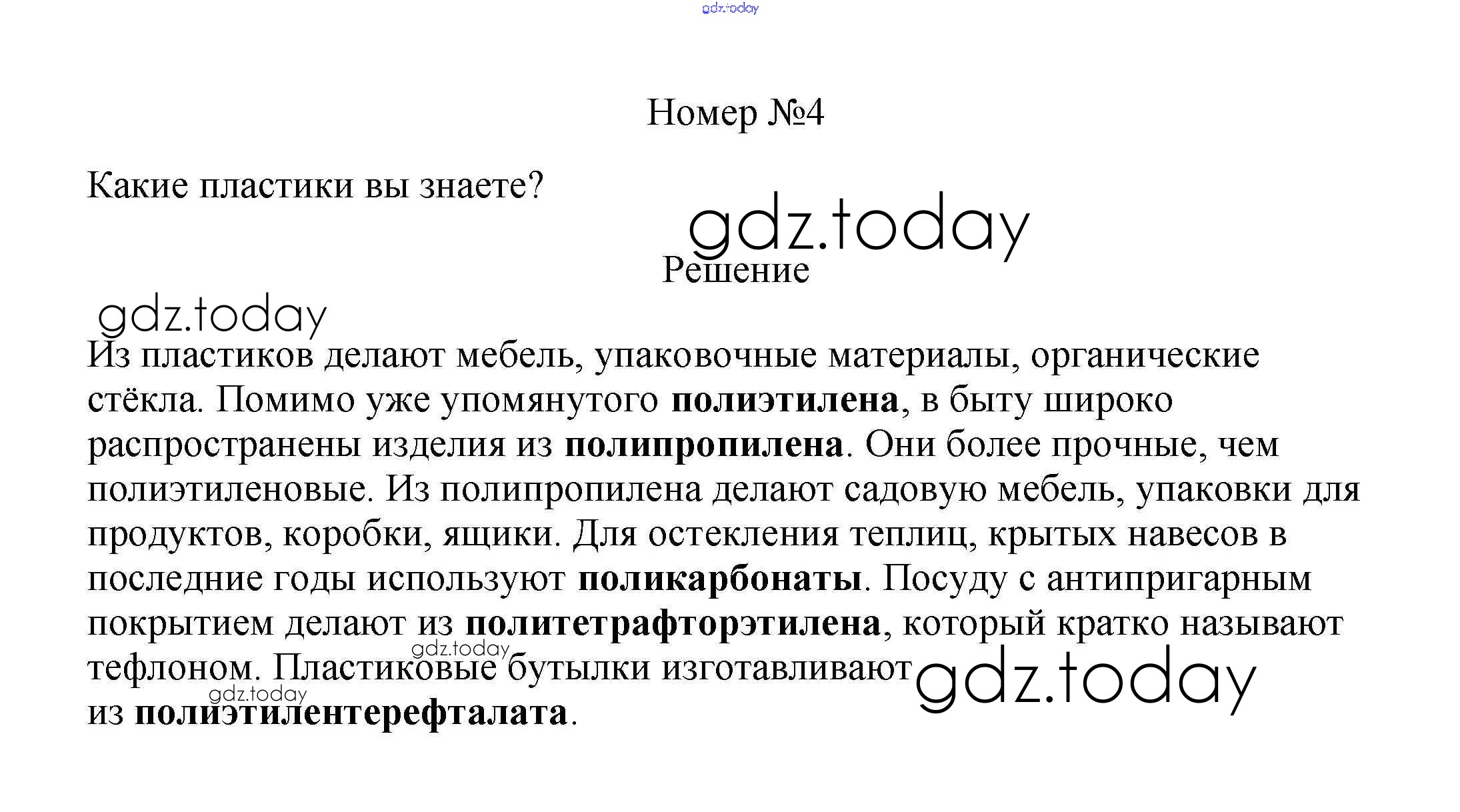 На страницах сайта gdz.today вы найдете учебный и вспомогательный материал, направленный на улучшения знаний школьной программы. ГДЗ - онлайн мир знаний Вопросы и задания Решение к §27. Полимеры 4 Учебнику по Химии для 7 класса Еремин, Дроздов Дрофа 2020