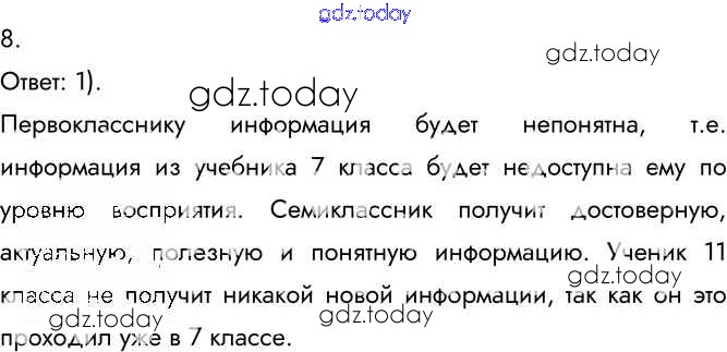 На страницах сайта gdz.today вы найдете учебный и вспомогательный материал, направленный на улучшения знаний школьной программы. ГДЗ - онлайн мир знаний §1.1 Решение к главе 1 8 Учебнику по Информатике для 7 класса Босова Бином 2015
