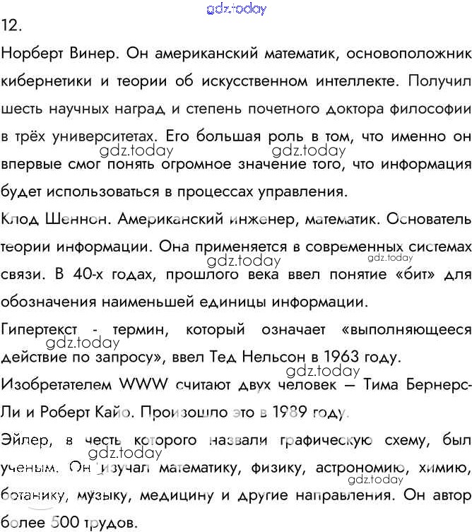 На страницах сайта gdz.today вы найдете учебный и вспомогательный материал, направленный на улучшения знаний школьной программы. ГДЗ - онлайн мир знаний §1.3 Решение к главе 1 12 Учебнику по Информатике для 7 класса Босова Бином 2015