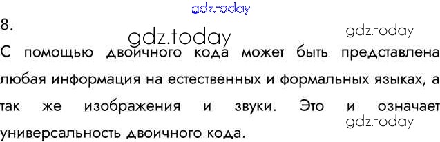 На страницах сайта gdz.today вы найдете учебный и вспомогательный материал, направленный на улучшения знаний школьной программы. ГДЗ - онлайн мир знаний §1.5 Решение к главе 1 8 Учебнику по Информатике для 7 класса Босова Бином 2015
