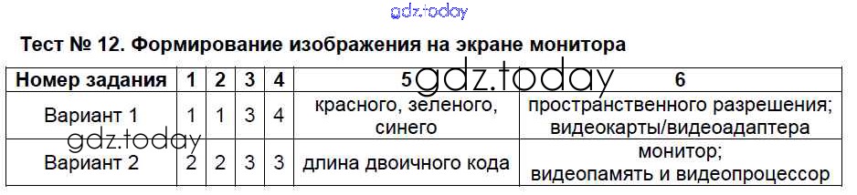 На страницах сайта gdz.today вы найдете учебный и вспомогательный материал, направленный на улучшения знаний школьной программы. ГДЗ - онлайн мир знаний Решение к тестам Тест №12. Формирование изображения на экране монитора Контрольно-измерительным материалам (КИМ) по Информатике для 7 класса Масленикова ВАКО 2017