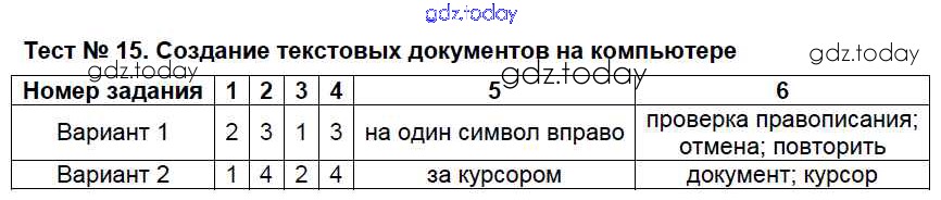 На страницах сайта gdz.today вы найдете учебный и вспомогательный материал, направленный на улучшения знаний школьной программы. ГДЗ - онлайн мир знаний Решение к тестам Тест №15. Создание текстовых документов на компьютере Контрольно-измерительным материалам (КИМ) по Информатике для 7 класса Масленикова ВАКО 2017
