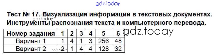Ответы к Решение к тестам Тест №17. Визуализация информации в текстовых документах Контрольно-измерительным материалам (КИМ) по Информатике для 7 класса Масленикова ВАКО 2017