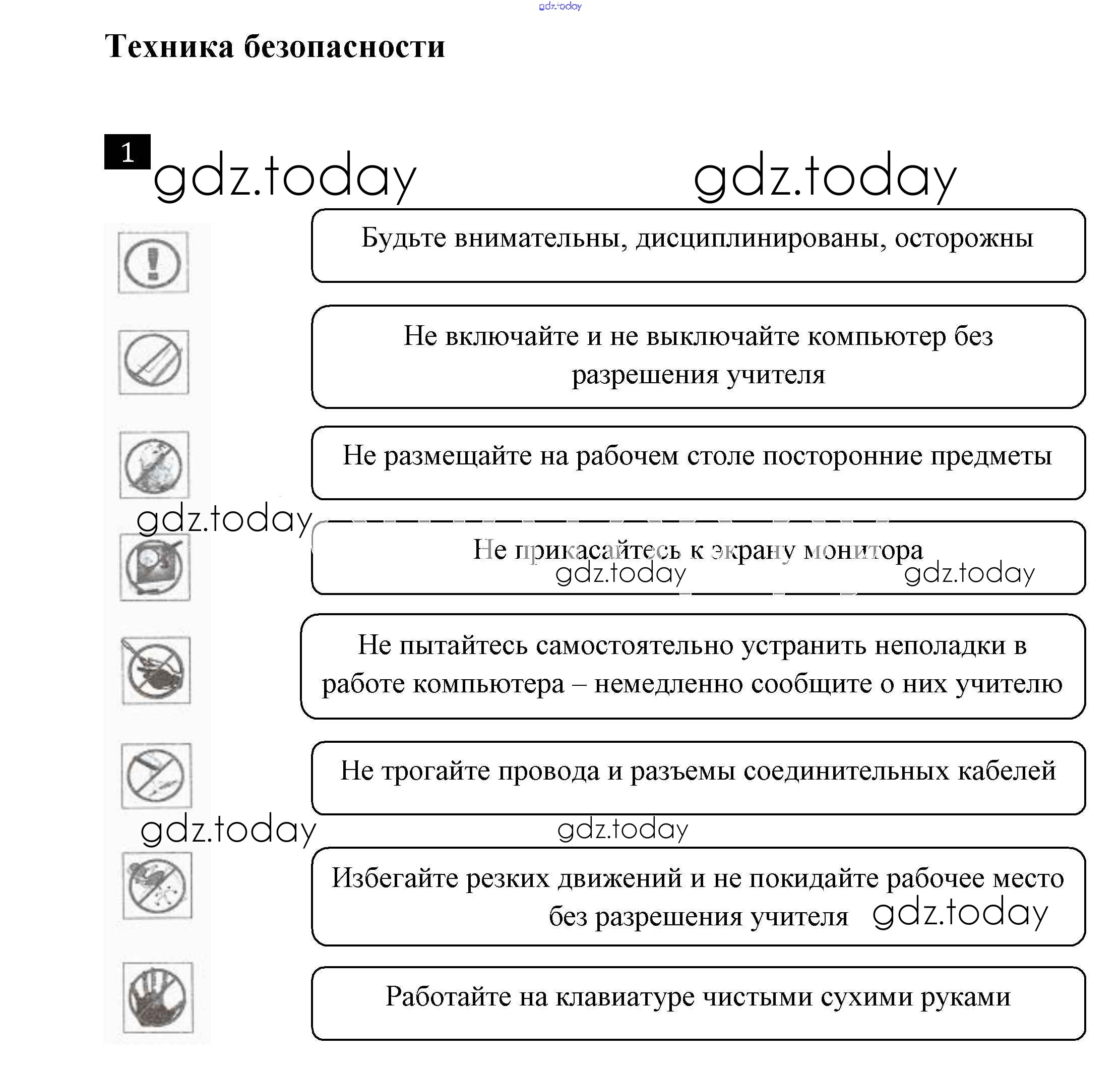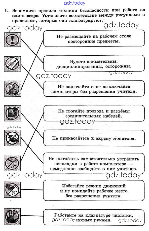 На страницах сайта gdz.today вы найдете учебный и вспомогательный материал, направленный на улучшения знаний школьной программы. ГДЗ - онлайн мир знаний Решение к заданиям 1 Рабочей тетради по Информатике для 7 класса Босова Бином 2018