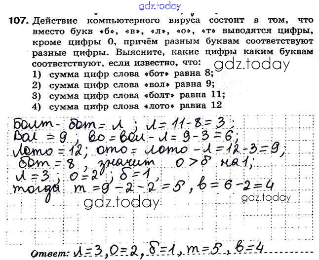 Ответы к Решение к заданиям 107 Рабочей тетради по Информатике для 7 класса Босова Бином 2018