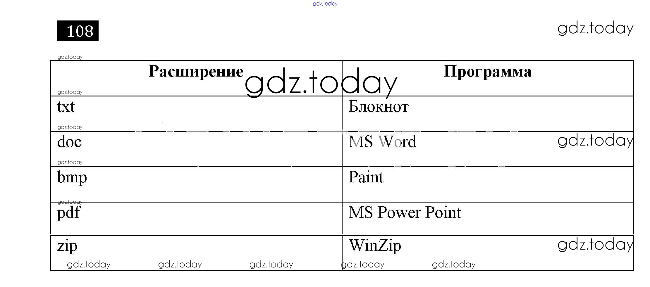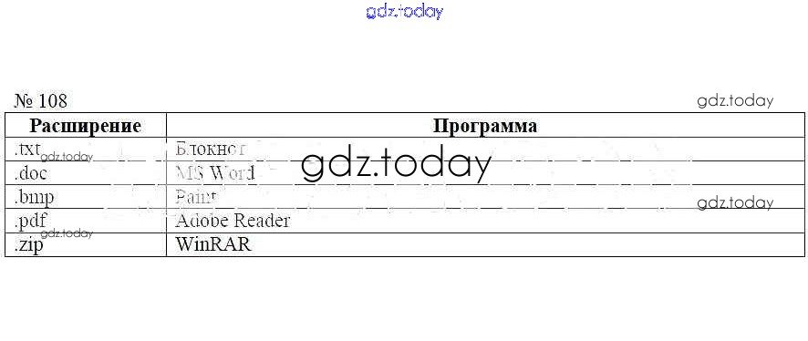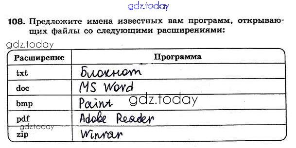 На страницах сайта gdz.today вы найдете учебный и вспомогательный материал, направленный на улучшения знаний школьной программы. ГДЗ - онлайн мир знаний Решение к заданиям 108 Рабочей тетради по Информатике для 7 класса Босова Бином 2018