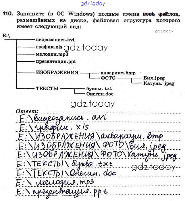 На страницах сайта gdz.today вы найдете учебный и вспомогательный материал, направленный на улучшения знаний школьной программы. ГДЗ - онлайн мир знаний Решение к заданиям 110 Рабочей тетради по Информатике для 7 класса Босова Бином 2018