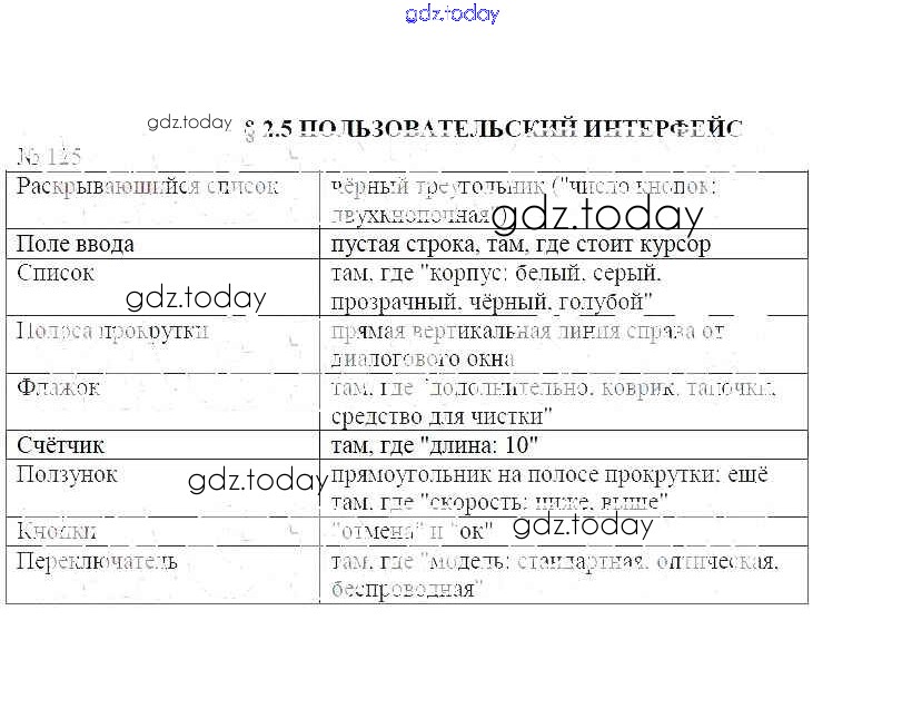 На страницах сайта gdz.today вы найдете учебный и вспомогательный материал, направленный на улучшения знаний школьной программы. ГДЗ - онлайн мир знаний Решение к заданиям 125 Рабочей тетради по Информатике для 7 класса Босова Бином 2018