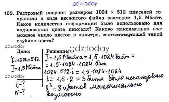 Ответы к Решение к заданиям 165 Рабочей тетради по Информатике для 7 класса Босова Бином 2018