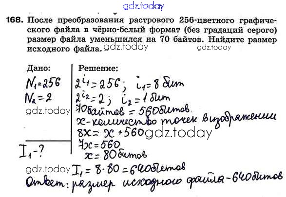 Ответы к Решение к заданиям 168 Рабочей тетради по Информатике для 7 класса Босова Бином 2018