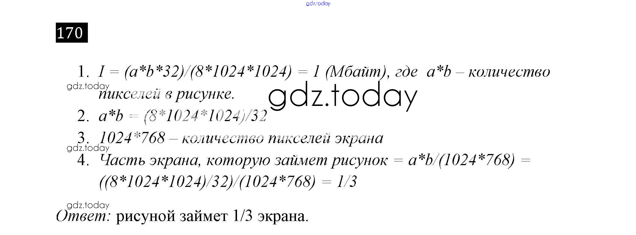 На страницах сайта gdz.today вы найдете учебный и вспомогательный материал, направленный на улучшения знаний школьной программы. ГДЗ - онлайн мир знаний Решение к заданиям 170 Рабочей тетради по Информатике для 7 класса Босова Бином 2018