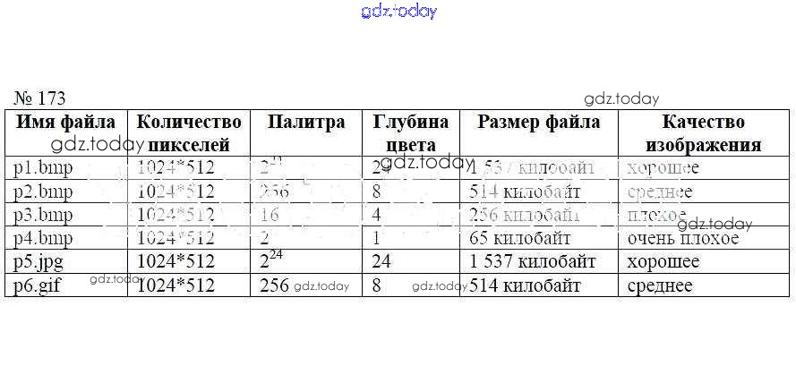 Ответы к Решение к заданиям 173 Рабочей тетради по Информатике для 7 класса Босова Бином 2018