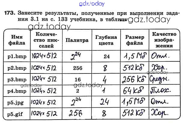 На страницах сайта gdz.today вы найдете учебный и вспомогательный материал, направленный на улучшения знаний школьной программы. ГДЗ - онлайн мир знаний Решение к заданиям 173 Рабочей тетради по Информатике для 7 класса Босова Бином 2018