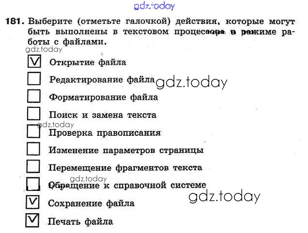 На страницах сайта gdz.today вы найдете учебный и вспомогательный материал, направленный на улучшения знаний школьной программы. ГДЗ - онлайн мир знаний Решение к заданиям 181 Рабочей тетради по Информатике для 7 класса Босова Бином 2018