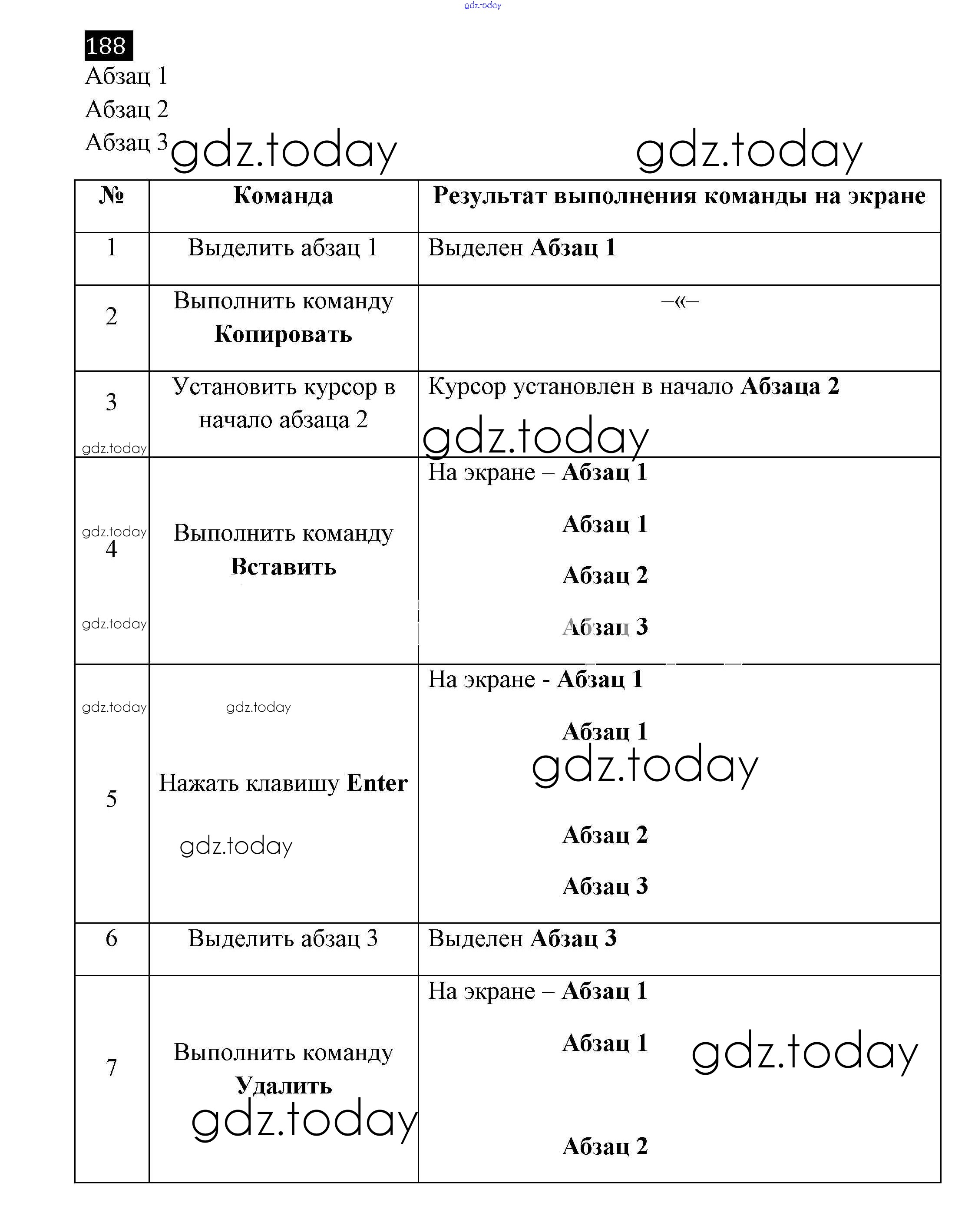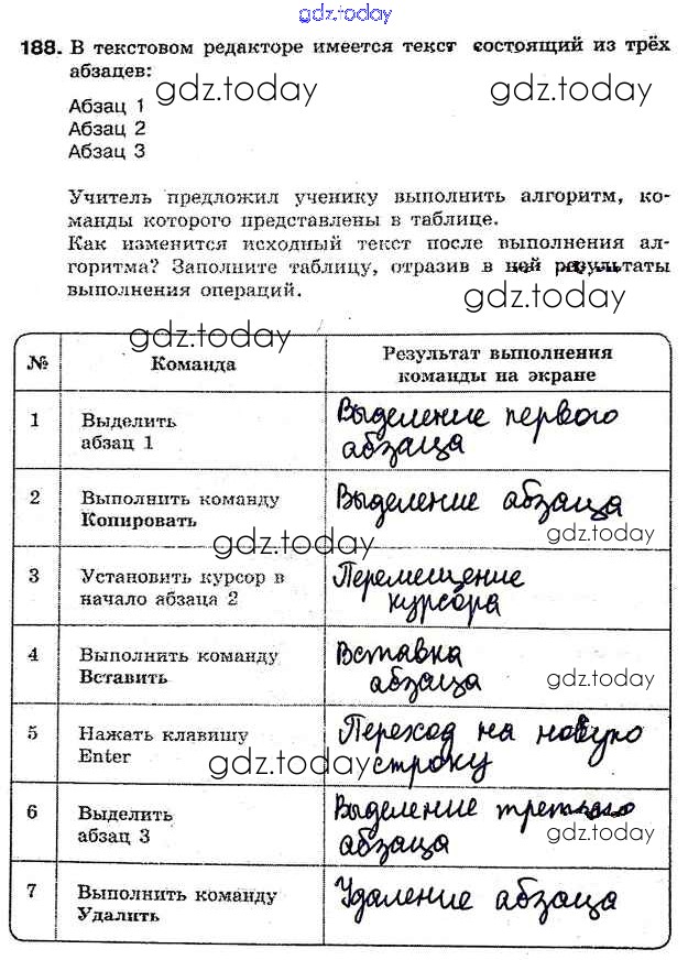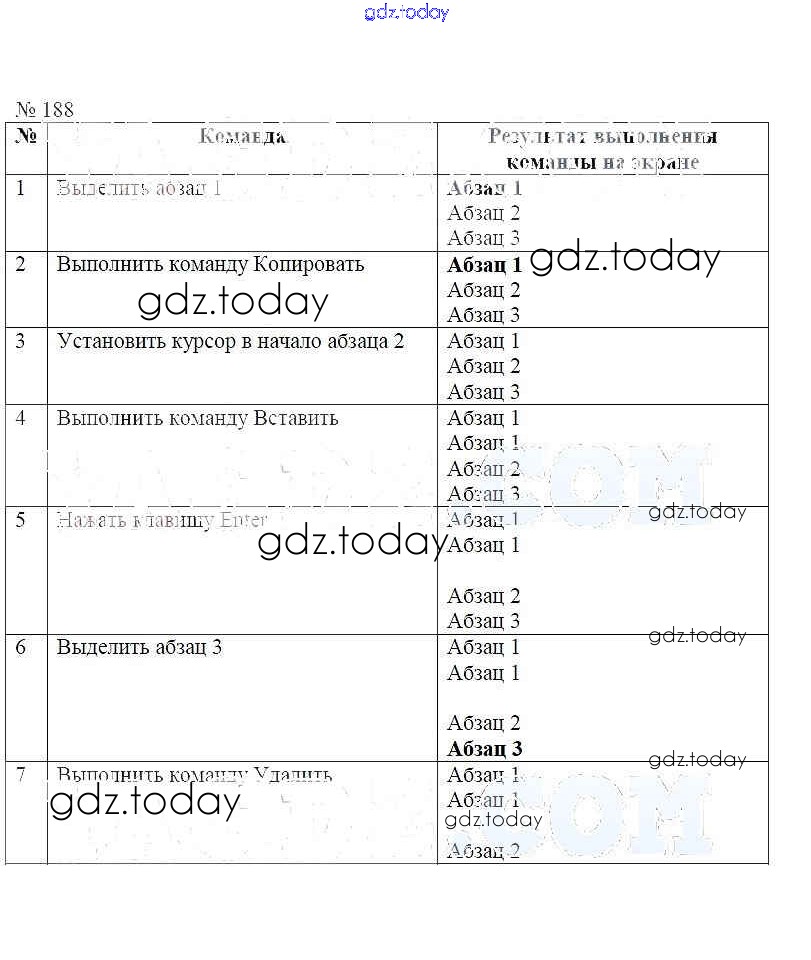 На страницах сайта gdz.today вы найдете учебный и вспомогательный материал, направленный на улучшения знаний школьной программы. ГДЗ - онлайн мир знаний Решение к заданиям 188 Рабочей тетради по Информатике для 7 класса Босова Бином 2018