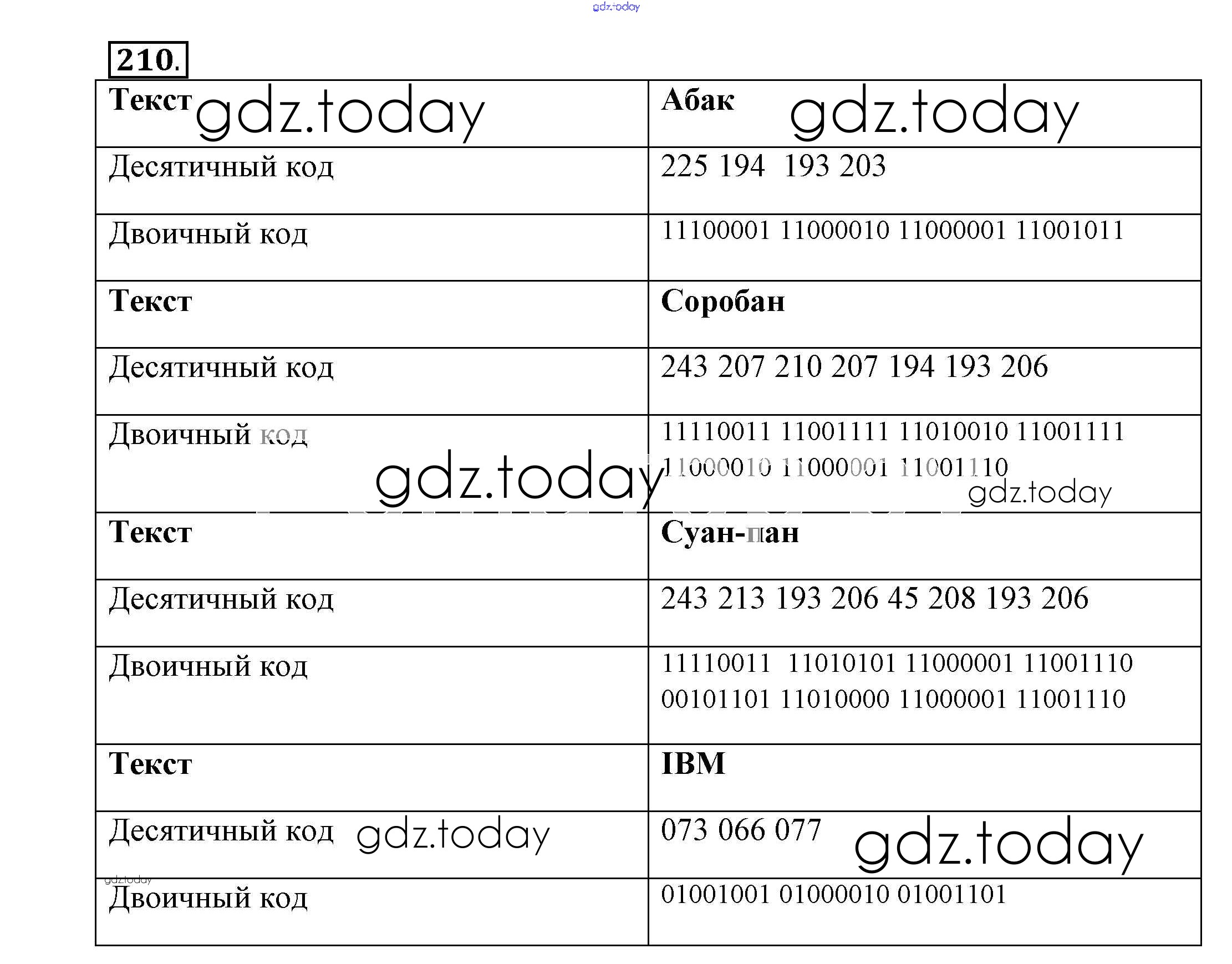 На страницах сайта gdz.today вы найдете учебный и вспомогательный материал, направленный на улучшения знаний школьной программы. ГДЗ - онлайн мир знаний Решение к заданиям 210 Рабочей тетради по Информатике для 7 класса Босова Бином 2018