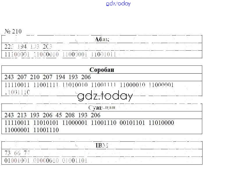 Ответы к Решение к заданиям 210 Рабочей тетради по Информатике для 7 класса Босова Бином 2018