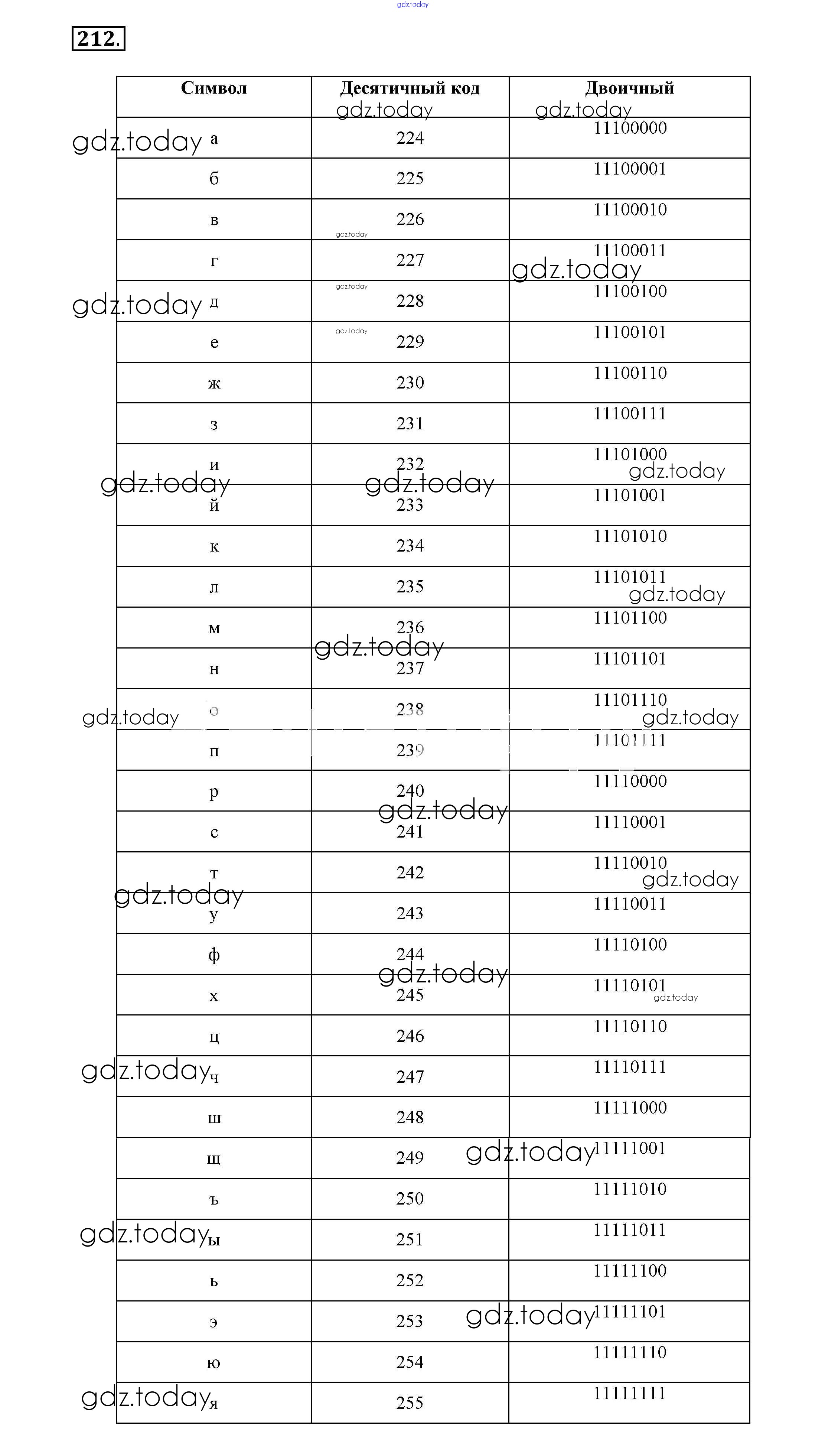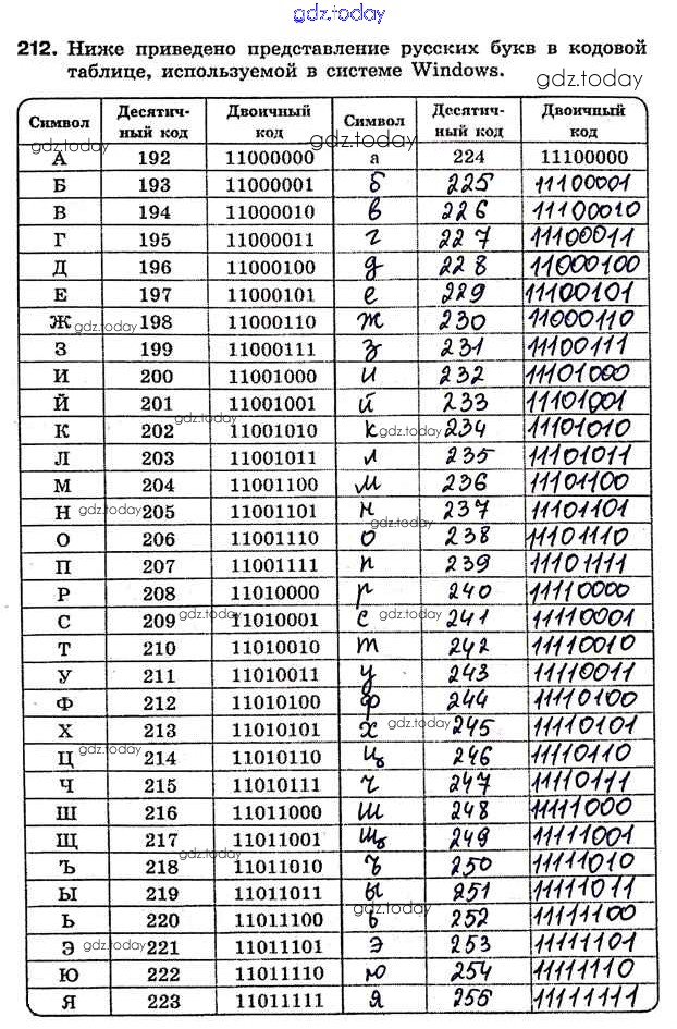 Ответы к Решение к заданиям 212 Рабочей тетради по Информатике для 7 класса Босова Бином 2018