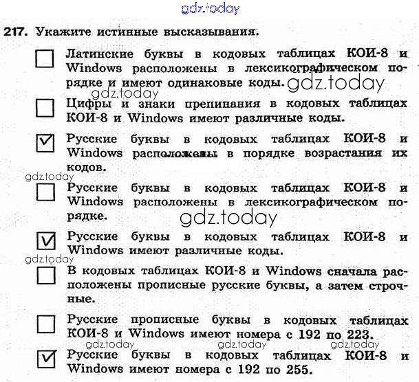 На страницах сайта gdz.today вы найдете учебный и вспомогательный материал, направленный на улучшения знаний школьной программы. ГДЗ - онлайн мир знаний Решение к заданиям 217 Рабочей тетради по Информатике для 7 класса Босова Бином 2018