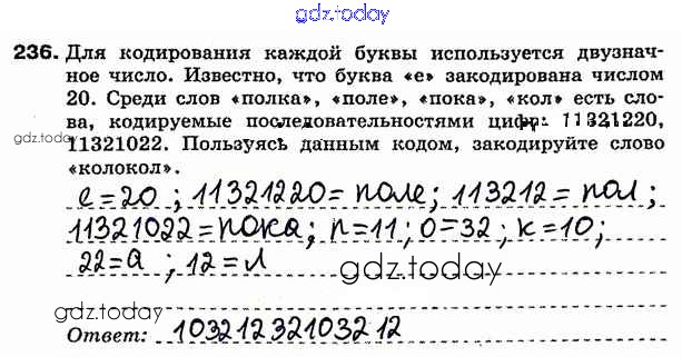 Ответы к Решение к заданиям 236 Рабочей тетради по Информатике для 7 класса Босова Бином 2018