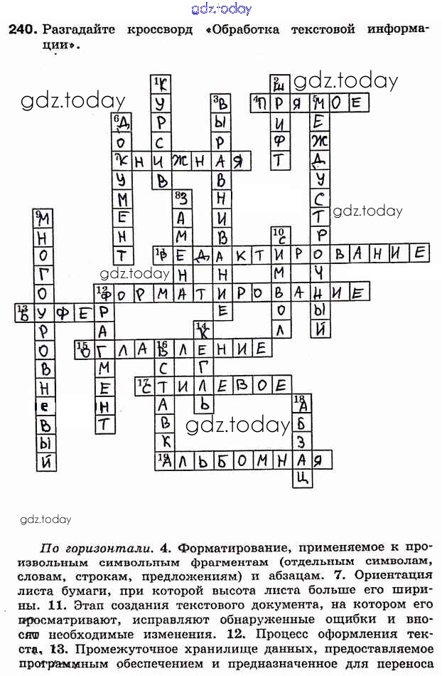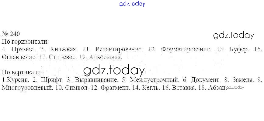 На страницах сайта gdz.today вы найдете учебный и вспомогательный материал, направленный на улучшения знаний школьной программы. ГДЗ - онлайн мир знаний Решение к заданиям 240 Рабочей тетради по Информатике для 7 класса Босова Бином 2018