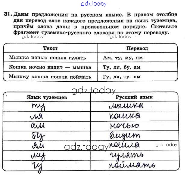 Ответы к Решение к заданиям 31 Рабочей тетради по Информатике для 7 класса Босова Бином 2018