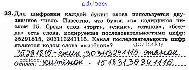 На страницах сайта gdz.today вы найдете учебный и вспомогательный материал, направленный на улучшения знаний школьной программы. ГДЗ - онлайн мир знаний Решение к заданиям 33 Рабочей тетради по Информатике для 7 класса Босова Бином 2018