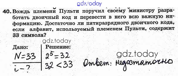 На страницах сайта gdz.today вы найдете учебный и вспомогательный материал, направленный на улучшения знаний школьной программы. ГДЗ - онлайн мир знаний Решение к заданиям 40 Рабочей тетради по Информатике для 7 класса Босова Бином 2018