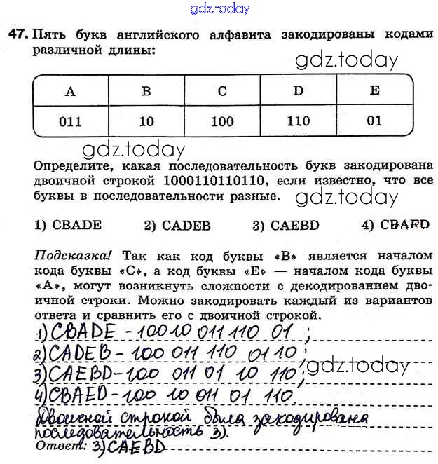 Ответы к Решение к заданиям 47 Рабочей тетради по Информатике для 7 класса Босова Бином 2018