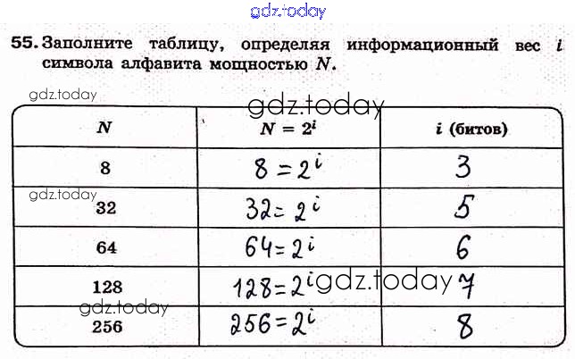 На страницах сайта gdz.today вы найдете учебный и вспомогательный материал, направленный на улучшения знаний школьной программы. ГДЗ - онлайн мир знаний Решение к заданиям 55 Рабочей тетради по Информатике для 7 класса Босова Бином 2018