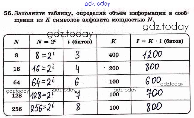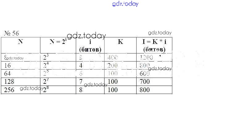 Ответы к Решение к заданиям 56 Рабочей тетради по Информатике для 7 класса Босова Бином 2018