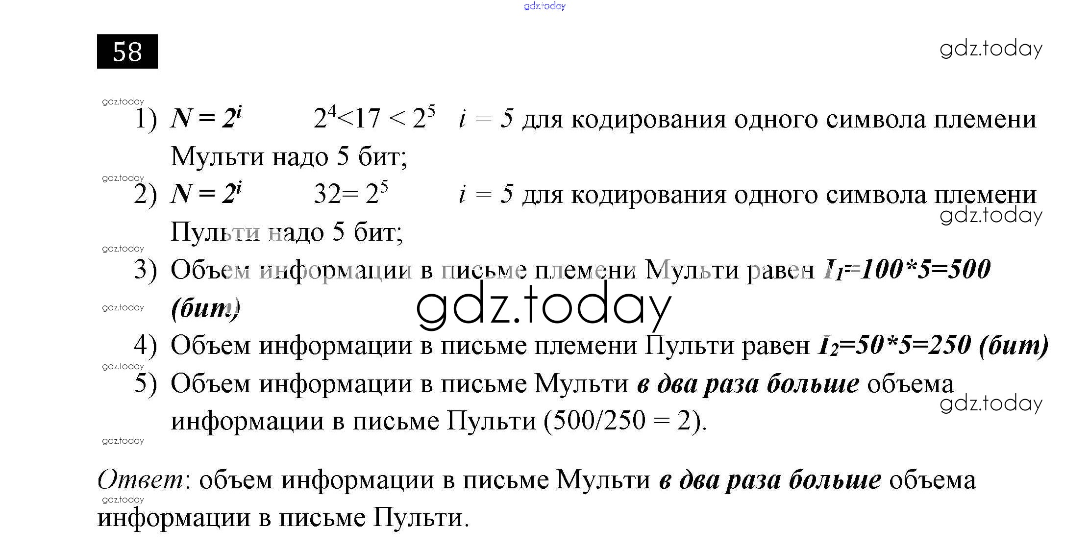 Ответы к Решение к заданиям 58 Рабочей тетради по Информатике для 7 класса Босова Бином 2018