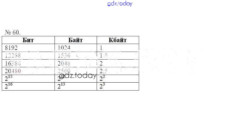 Ответы к Решение к заданиям 60 Рабочей тетради по Информатике для 7 класса Босова Бином 2018