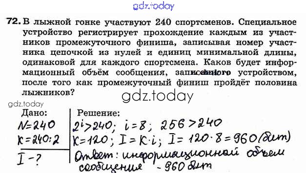 Ответы к Решение к заданиям 72 Рабочей тетради по Информатике для 7 класса Босова Бином 2018