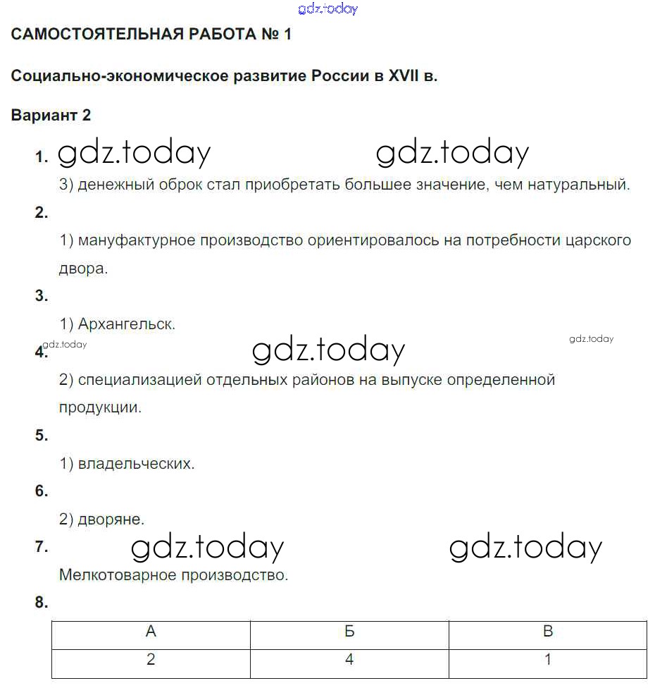 На страницах сайта gdz.today вы найдете учебный и вспомогательный материал, направленный на улучшения знаний школьной программы. ГДЗ - онлайн мир знаний СР-1. Социально-экономическое развитие России в XVII веке Решение к теме Россия в XVII веке Вариант 2 Рабочей тетради по Истории России для 7 класса Акиньшина, Артасов Национальное образование 2013
