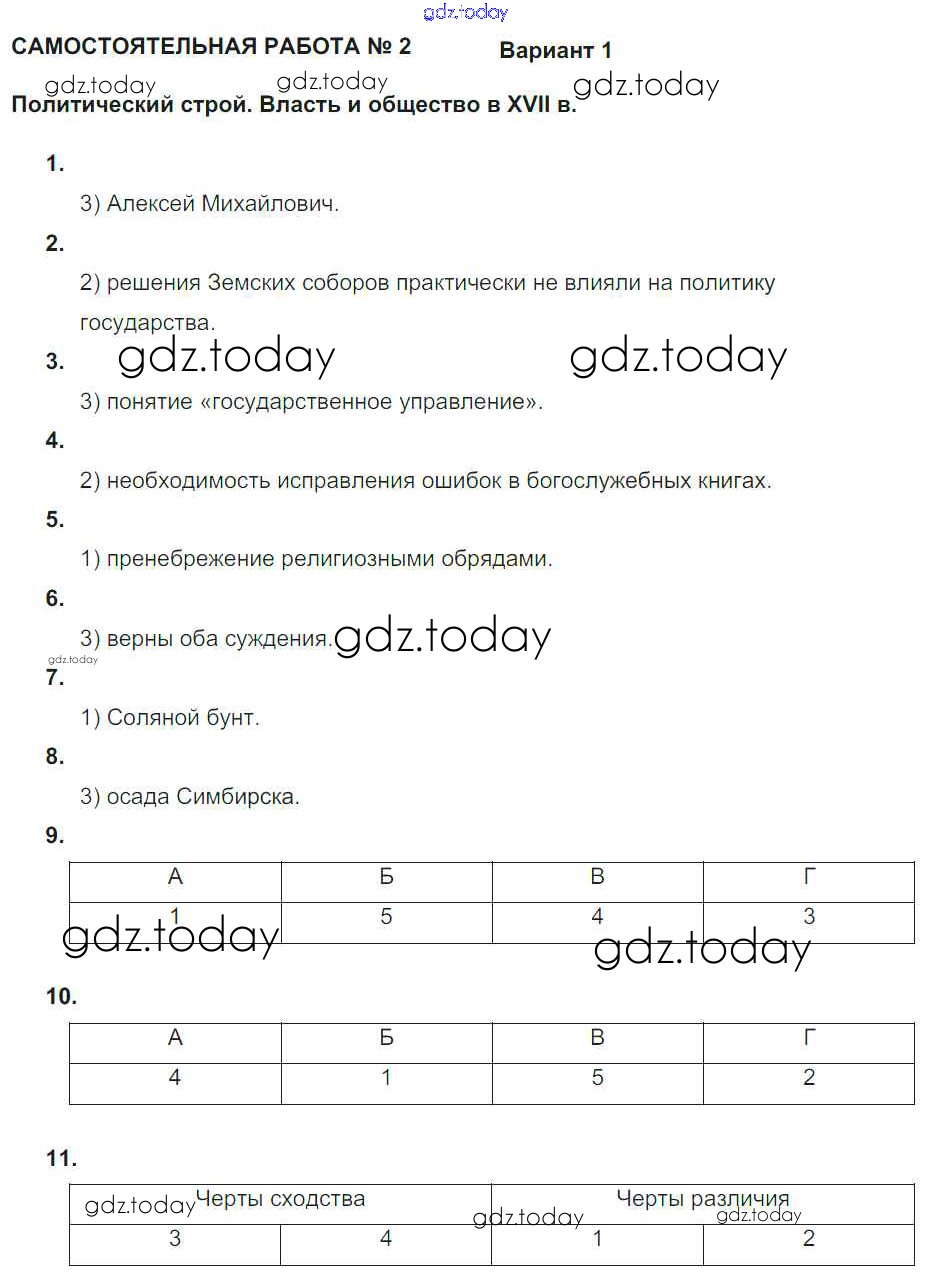 На страницах сайта gdz.today вы найдете учебный и вспомогательный материал, направленный на улучшения знаний школьной программы. ГДЗ - онлайн мир знаний СР-2. Политический строй. Власть и общество в XVII веке Решение к теме Россия в XVII веке Вариант 1 Рабочей тетради по Истории России для 7 класса Акиньшина, Артасов Национальное образование 2013