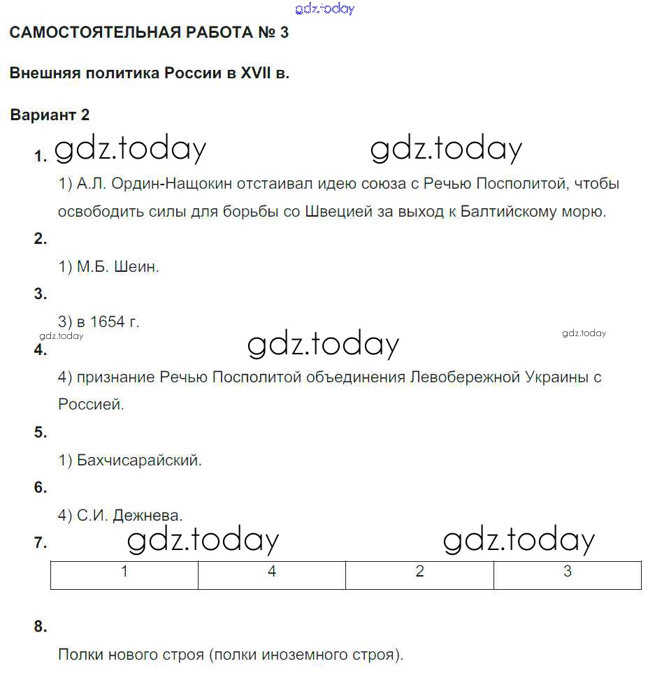 На страницах сайта gdz.today вы найдете учебный и вспомогательный материал, направленный на улучшения знаний школьной программы. ГДЗ - онлайн мир знаний СР-3. Внешняя политика России в XVII веке Решение к теме Россия в XVII веке Вариант 2 Рабочей тетради по Истории России для 7 класса Акиньшина, Артасов Национальное образование 2013