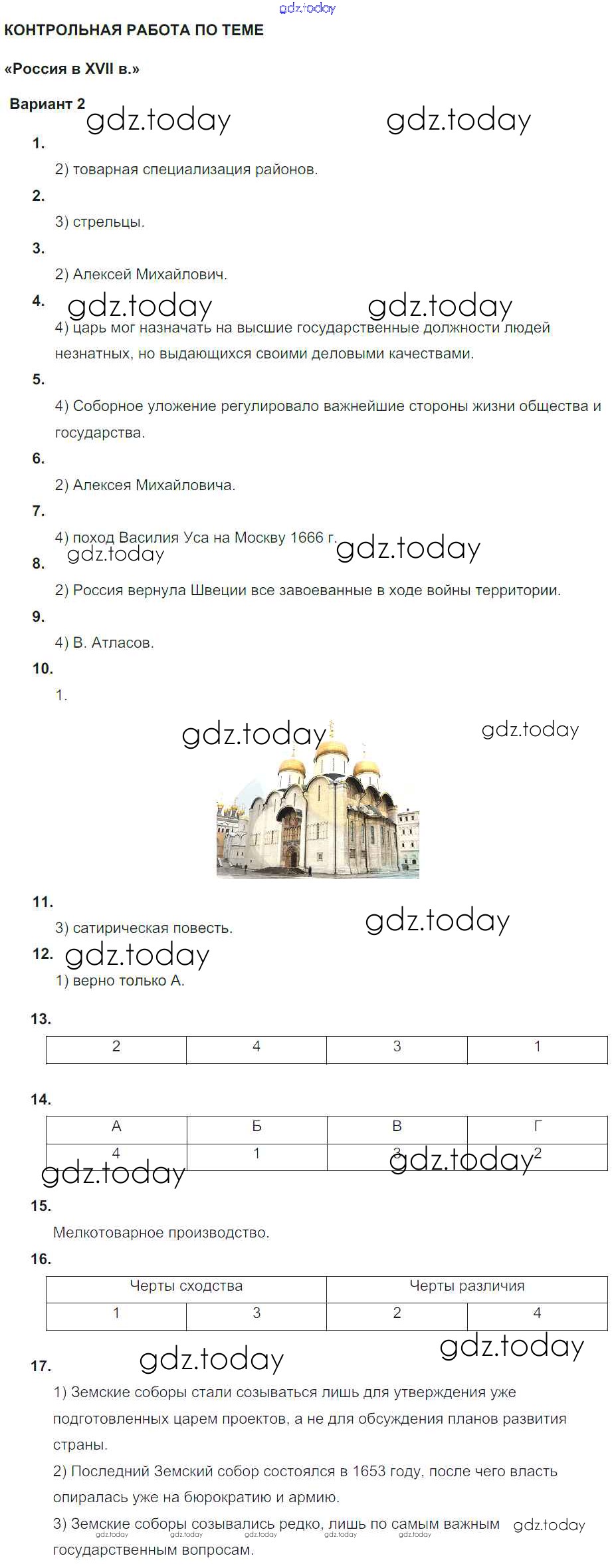 Ответы к КР. Россия в XVII веке Решение к теме Россия в XVII веке Вариант 2 Рабочей тетради по Истории России для 7 класса Акиньшина, Артасов Национальное образование 2013