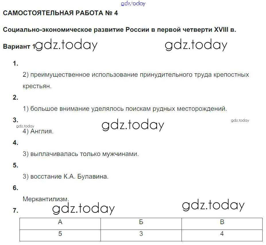 Ответы к СР-5. Изменения в культуре и быте Решение к теме Россия в первой четверти XVIII века Вариант 1 Рабочей тетради по Истории России для 7 класса Акиньшина, Артасов Национальное образование 2013