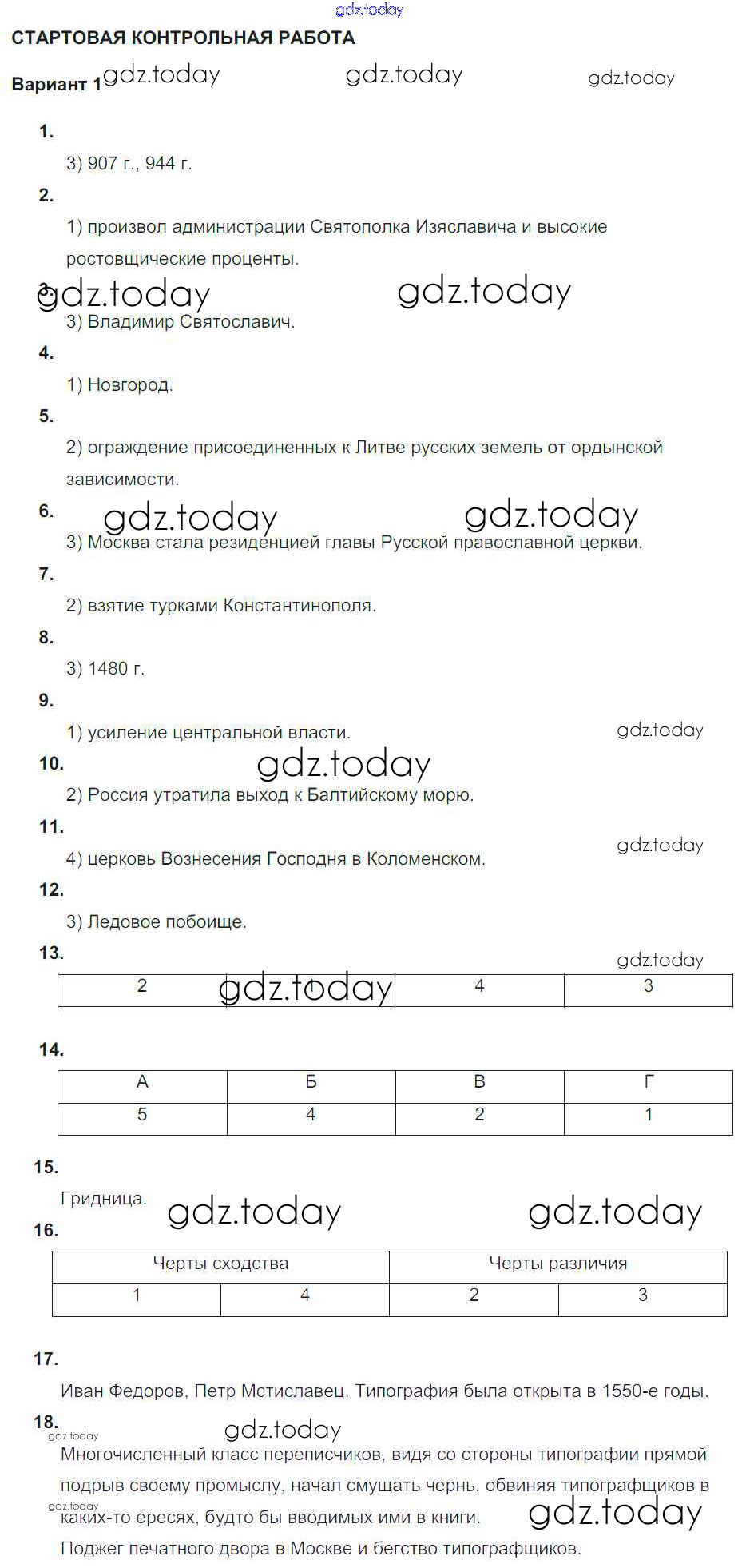 На страницах сайта gdz.today вы найдете учебный и вспомогательный материал, направленный на улучшения знаний школьной программы. ГДЗ - онлайн мир знаний Решение к стартовой контрольной работе Вариант 1 Рабочей тетради по Истории России для 7 класса Акиньшина, Артасов Национальное образование 2013