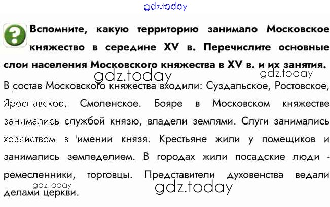 На страницах сайта gdz.today вы найдете учебный и вспомогательный материал, направленный на улучшения знаний школьной программы. ГДЗ - онлайн мир знаний Вопросы §2 стр.14 Учебнику по Истории России для 7 класса Арсентьев, Данилов Просвещение 2016