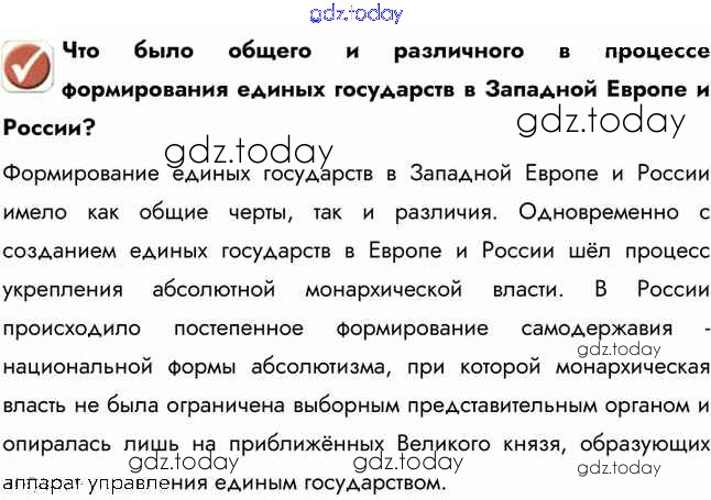 На страницах сайта gdz.today вы найдете учебный и вспомогательный материал, направленный на улучшения знаний школьной программы. ГДЗ - онлайн мир знаний Вопрос в начале параграфа §3 1 Учебнику по Истории России для 7 класса Арсентьев, Данилов Просвещение 2016